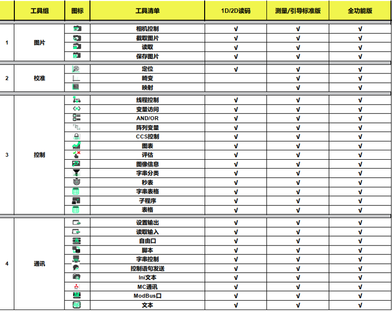 • 定位、二值化、測量、圖形匹配、邊緣、圓/直線查找、涂膠檢測、缺陷檢測、顏色提取、讀碼、OCR等數十個檢測工具滿足各種視覺檢測需求