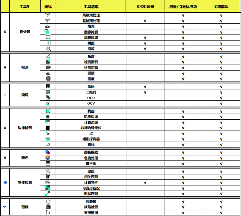 • 豐富的預處理工具用于處理低對比度圖像,提高檢測的穩定性